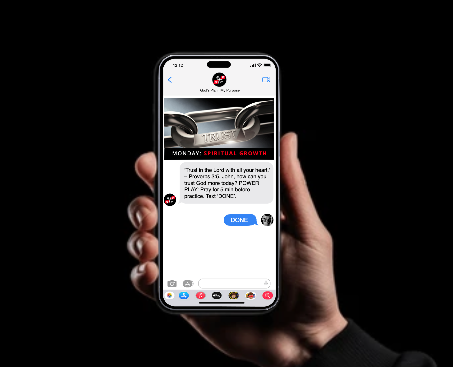 You’re built for greatness—but pressure, doubt, and distractions can hold you back. The GP:MP Digital Coaching System empowers you to rise above and fulfill the unique purpose God has for you. Our text-driven coaching program delivers daily guidance to fortify your faith, strengthen your body, sharpen your mind, and build lasting relationships.